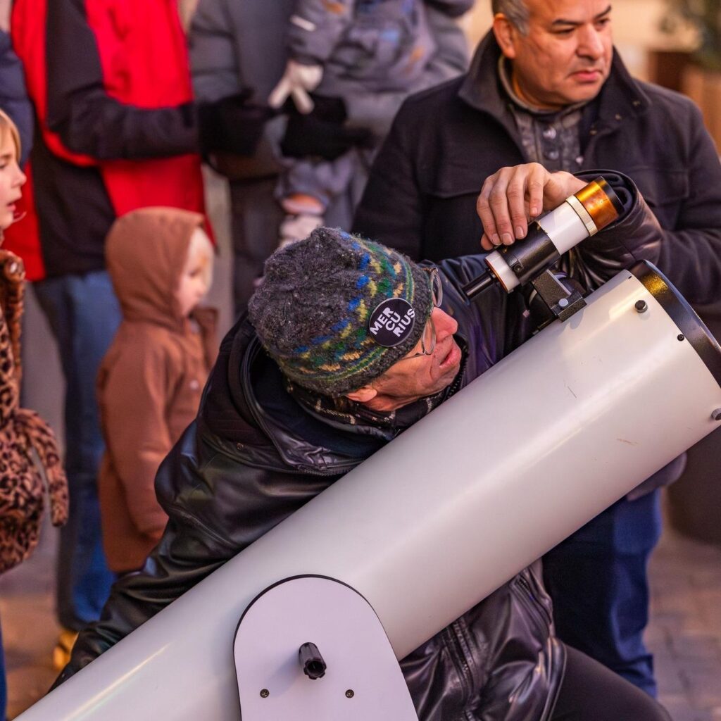 Op 30 december beleefden wij samen met Weizigt en andere betrokken partners een prachtige avond tijdens het lichtjesfestijn. Bezoekers maakten kennis met Sterrenwacht Mercurius en we hadden het geluk dat het helder weer was. Daardoor konden we volop genieten en door de telescoop naar de maan kijken. Ook de VR-brillen waren populair en moesten na afloop direct worden opgeladen. We hebben veel mogen vertellen over sterrenkunde, en het enthousiasme was groot. Ben je echt nieuwsgierig geworden en wil je nรณg meer ontdekken? Kom dan snel langs bij onze sterrenwacht in de Biesbosch. ๐Ÿ”ญ